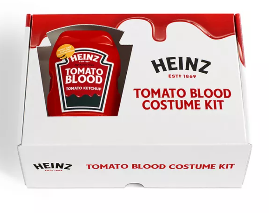 At first, Heinz simply released its classic ketchup in a new bottle labeled “Tomato Blood.” But soon, the brand leaned into the fun and encouraged fans to use the ketchup not just as food, but as fake blood for their Halloween costumes. The trend caught on quickly, and later on Heinz went even further by launching a special “Heinz Tomato Blood Costume Kit,” which included makeup tools, brushes, vampire teeth, and, of course, a bottle of ketchup to help people create their own looks.