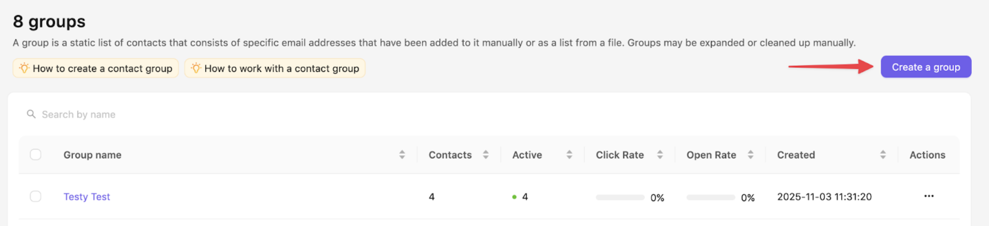 Groups help you organize multiple contact lists under one category. They make it easy to manage large audiences, launch campaigns for related lists, and segment your marketing efforts without duplicating contacts.