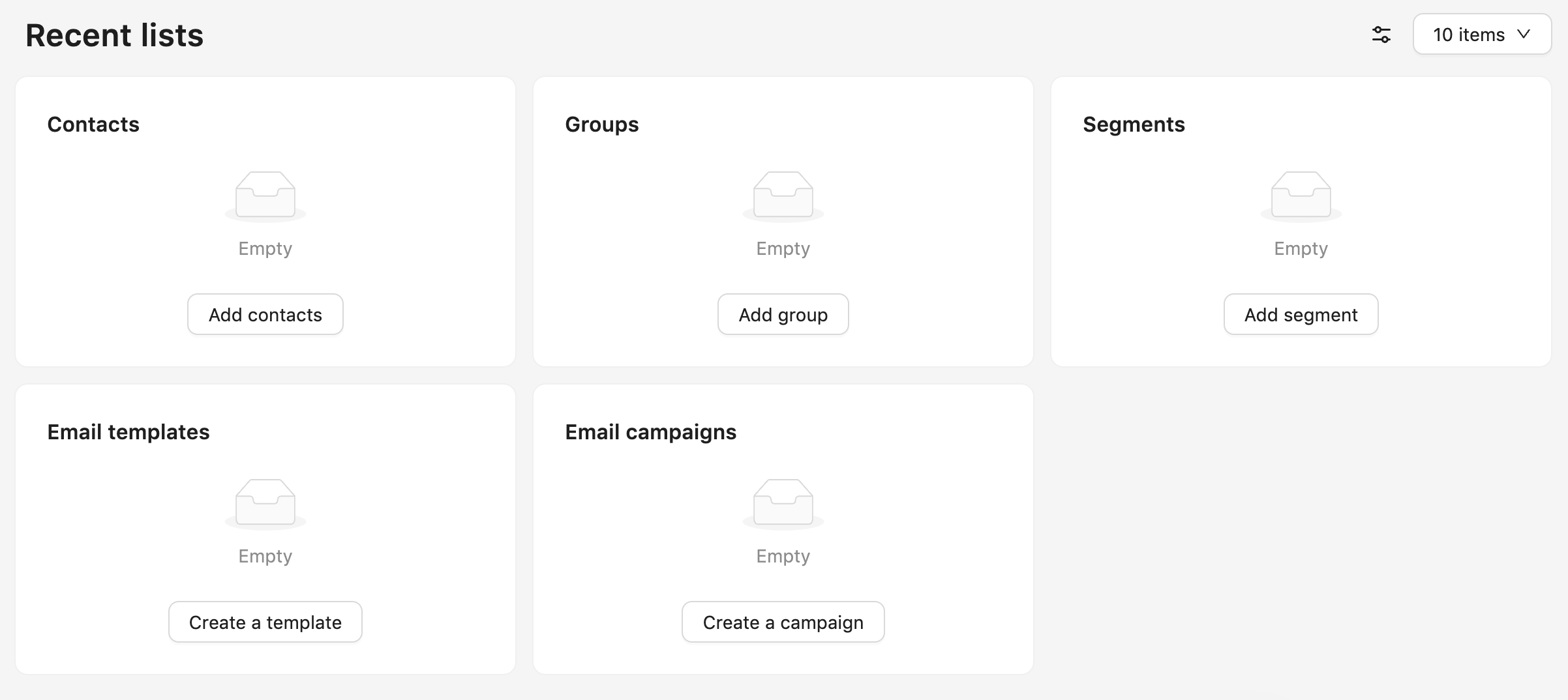 - The Recent Segments section shows the last segments you worked with — for example, “Inactive last 90 days” or “VIP customers.”
