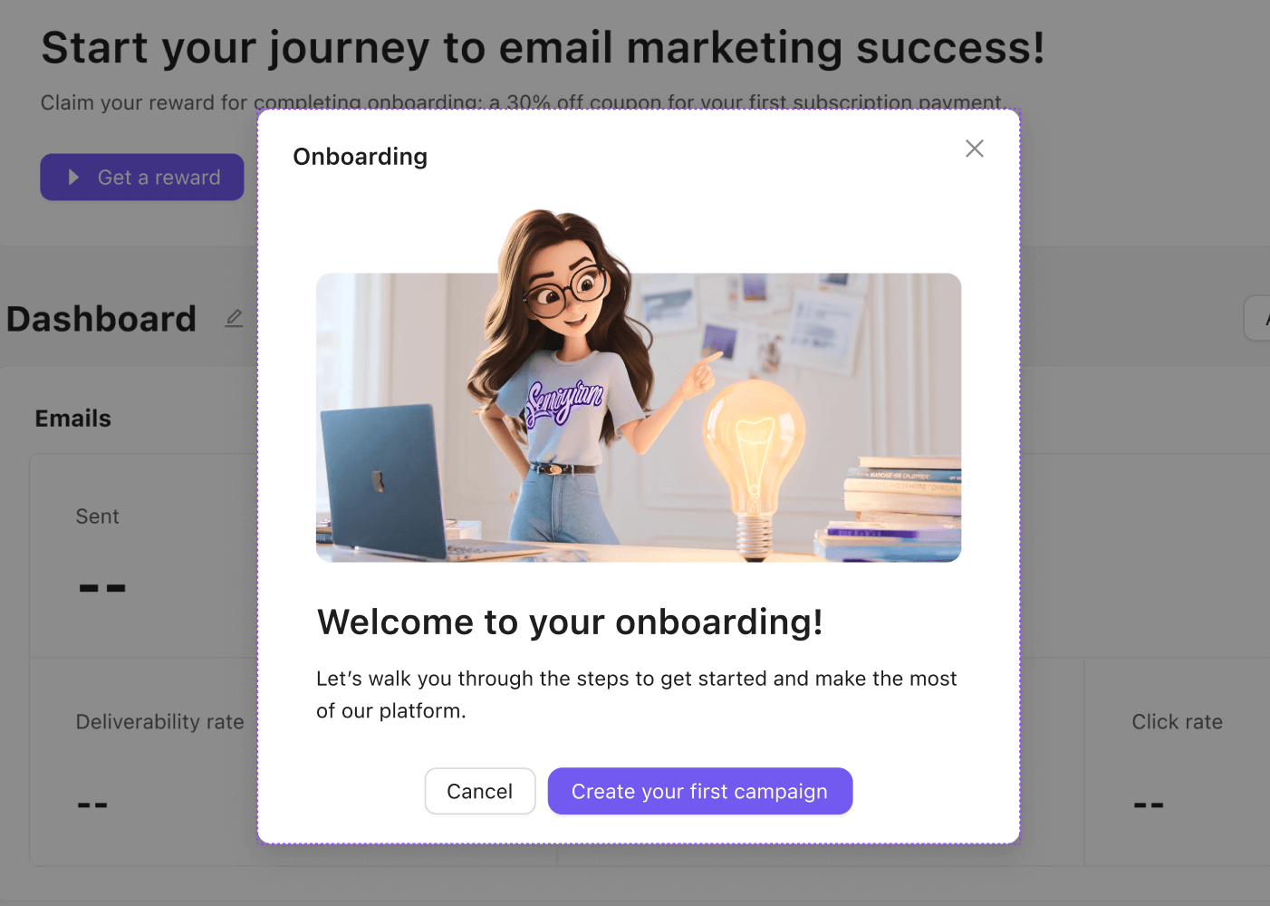 When you first sign up for Sendigram, the platform guides you through an onboarding process. This helps you quickly set up your account, connect your contacts, and launch your first campaign.