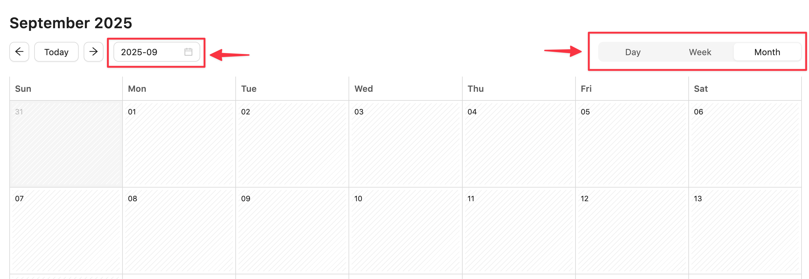 - Specific date range view – click on the date range view selector in the data range field.