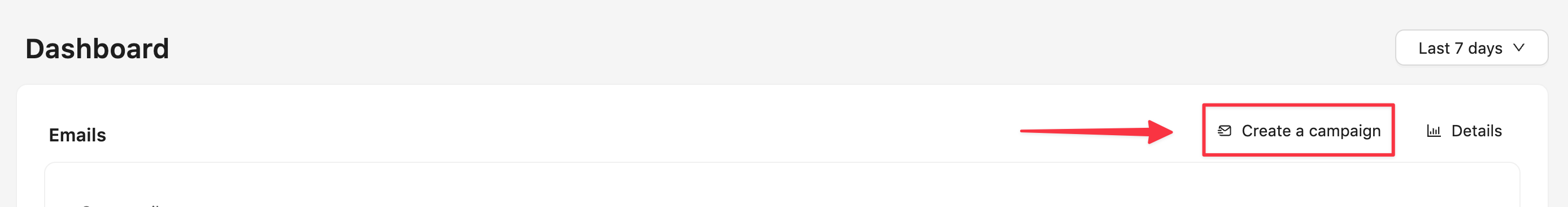 - Click Create a campaign button in the upper right corner of the Dashboard. Alternatively, you
