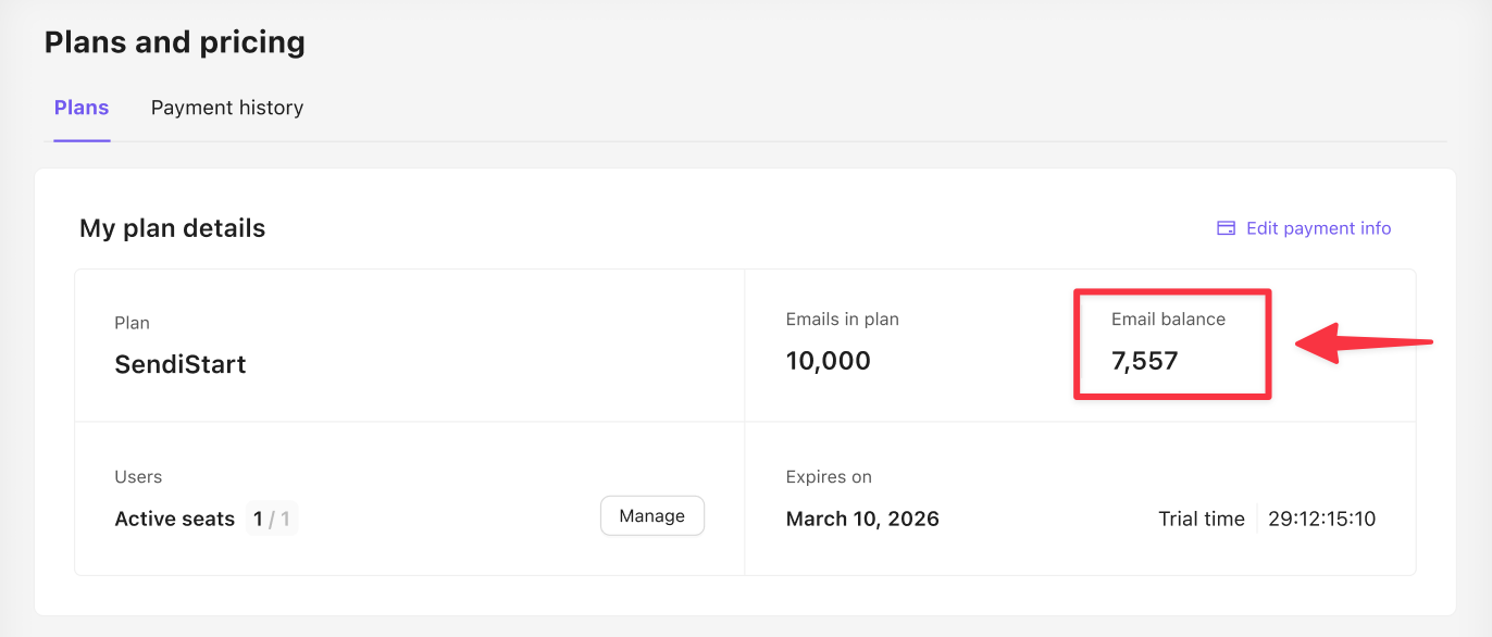 You can extend your sending capacity by purchasing additional packages of email credits. Packages are a flexible option if you temporarily need more emails than your plan allows.