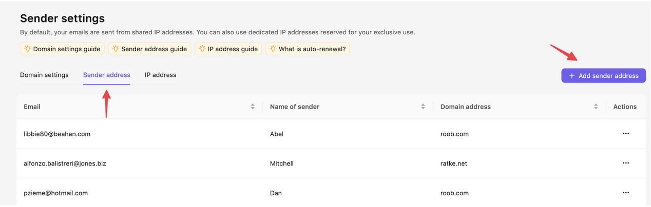 - Click Add sender address.